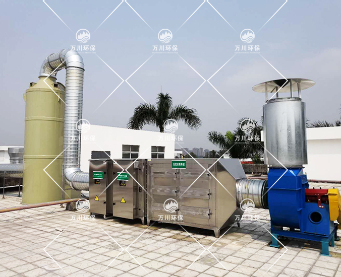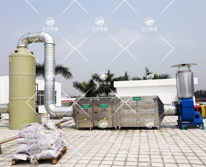 根據(jù)該公司的實際情況,白碳黑粉塵有易爆以及可回收再次利用的特點,我們采用‘UV光解+活性炭吸附+噴淋塔’進行處理。